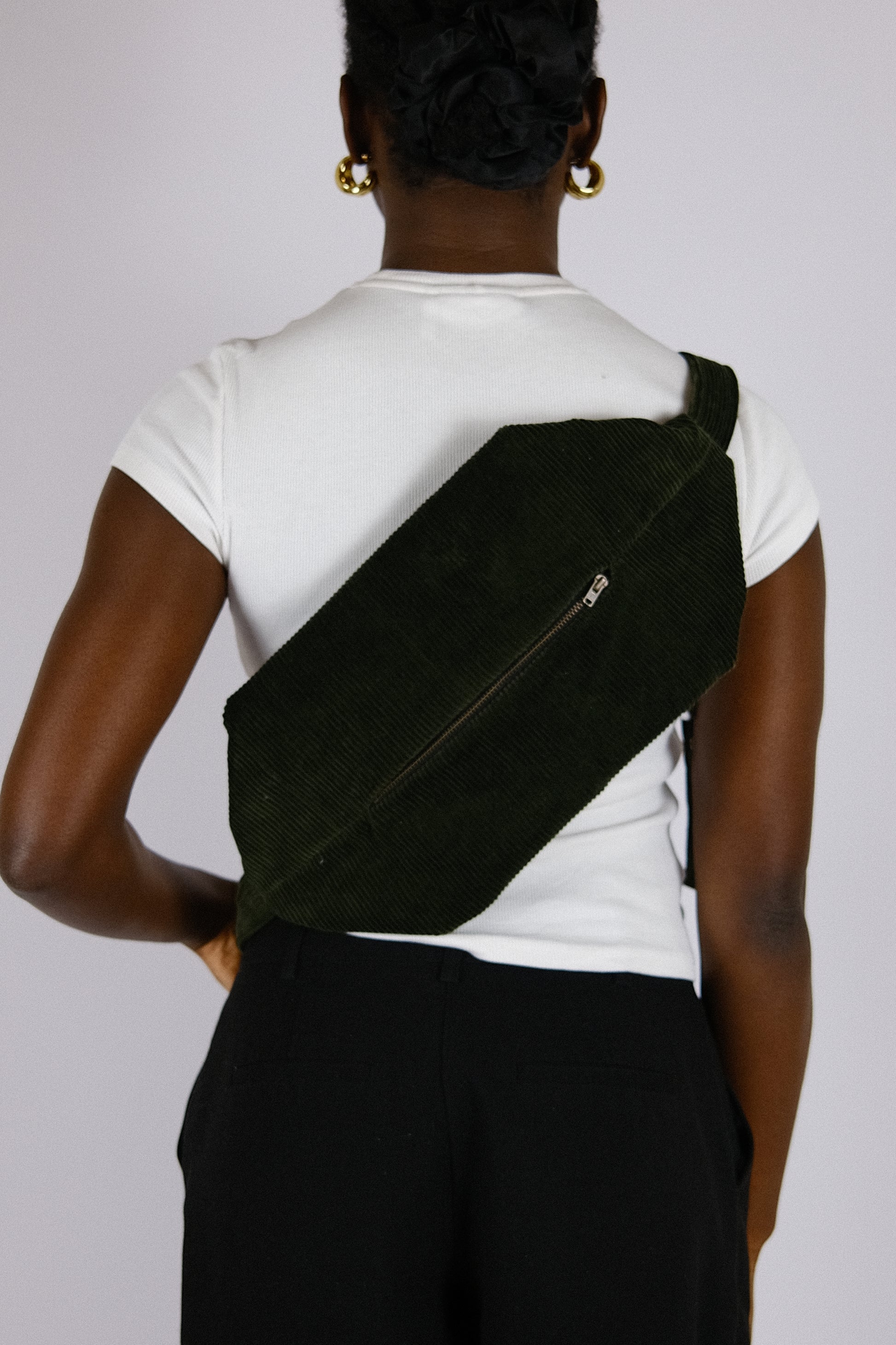 The Akodu Bag is a one-of-a-kind piece, made from reclaimed green corduroy, giving new life to a fabric that might have been forgotten. Each piece is handmade, ensuring artisanal quality and meaningful uniqueness.