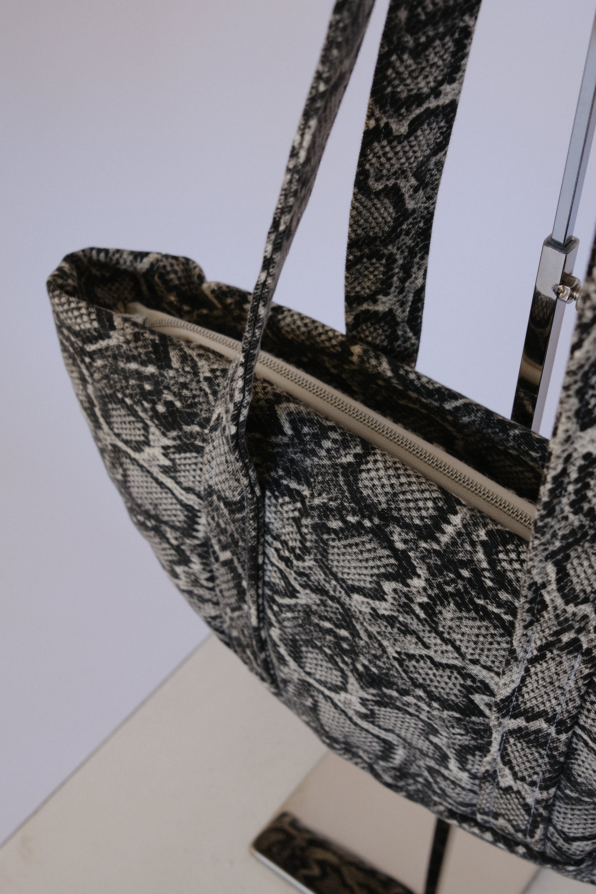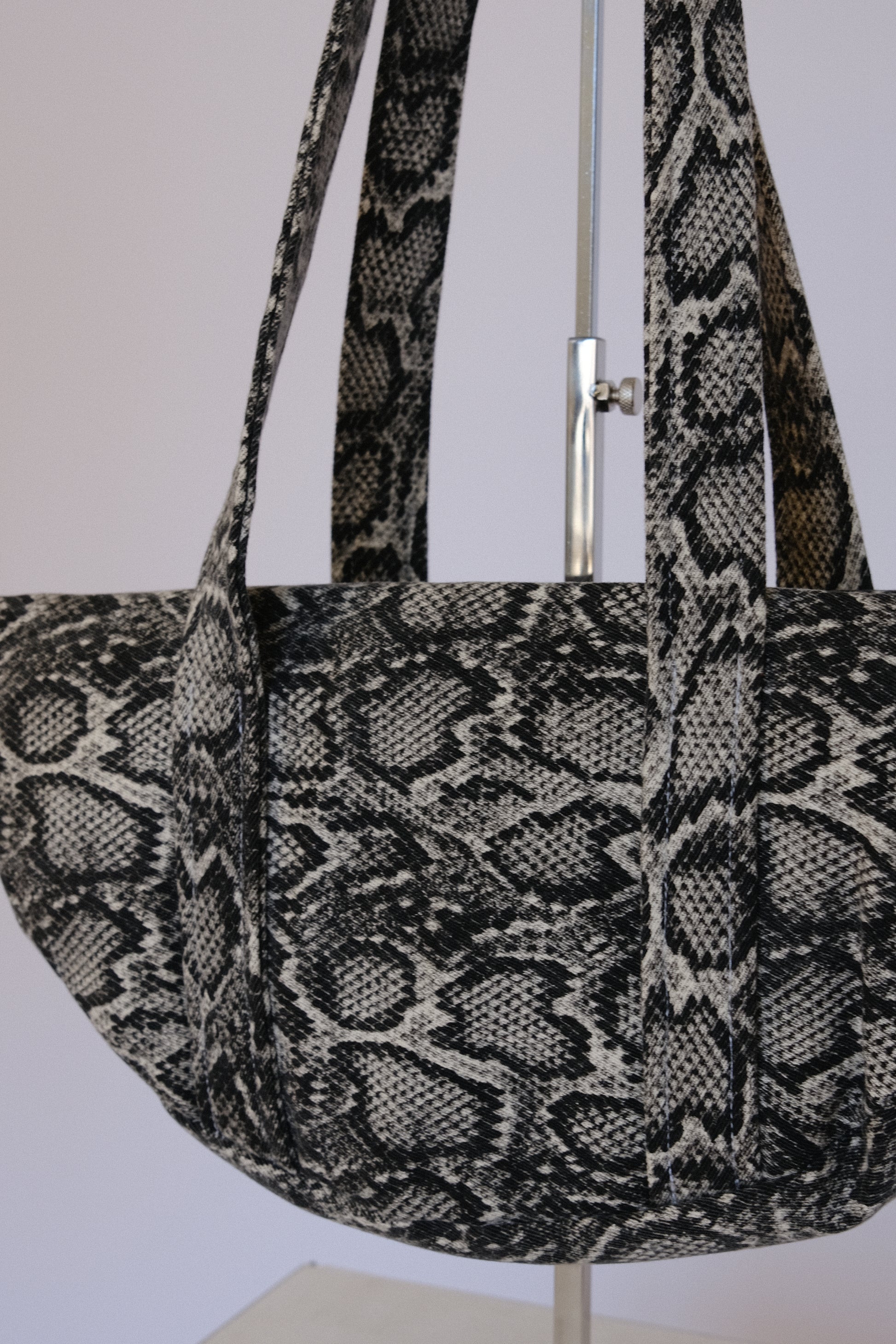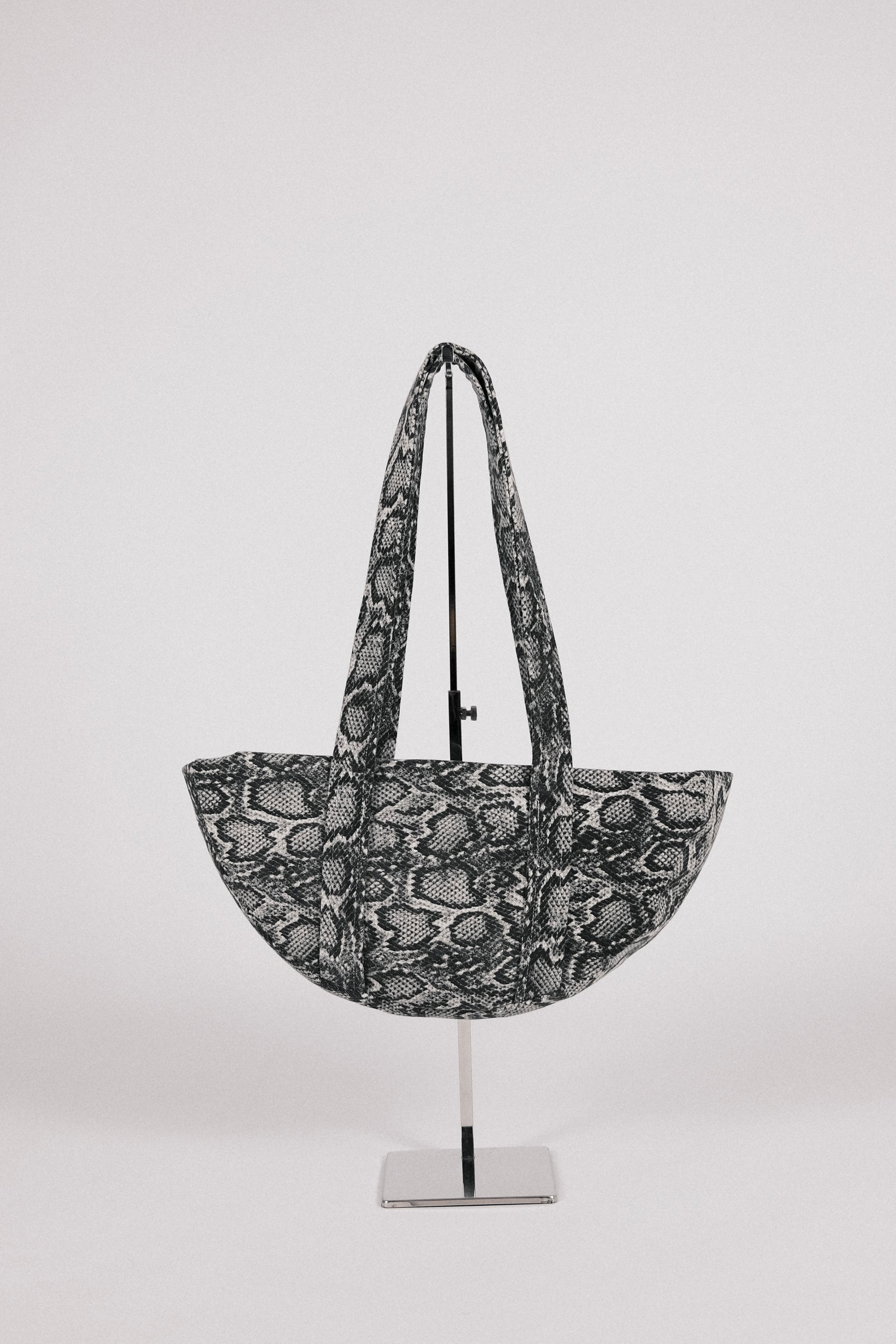 The Efli is a half-circle bag, inspired by the perfect form of the circle and the beauty of its intentional incompleteness. Made from reclaimed textiles, it embodies both boldness and the subtlety of sculptural design.