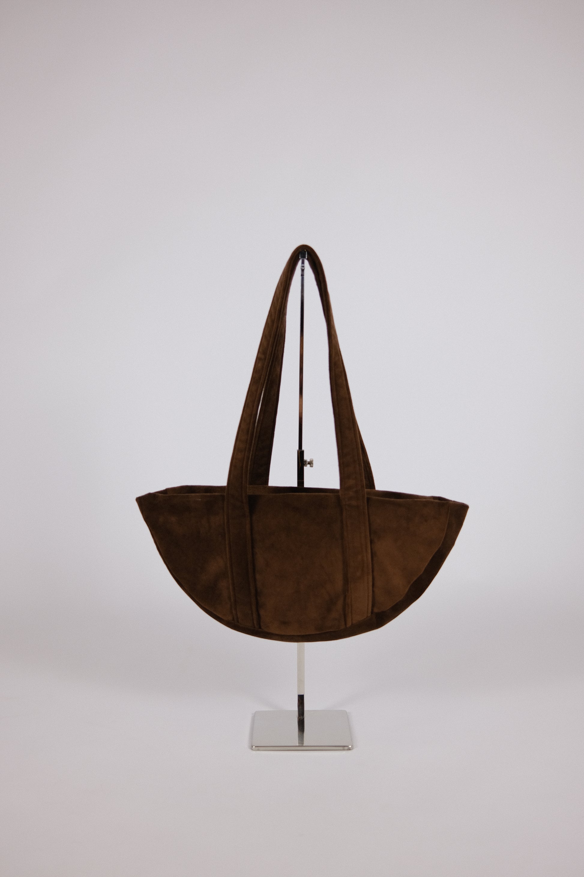 The Efli is a half-circle bag, inspired by the perfect form of the circle and the beauty of its intentional incompleteness. Made from reclaimed textiles, it embodies both boldness and the subtlety of sculptural design.