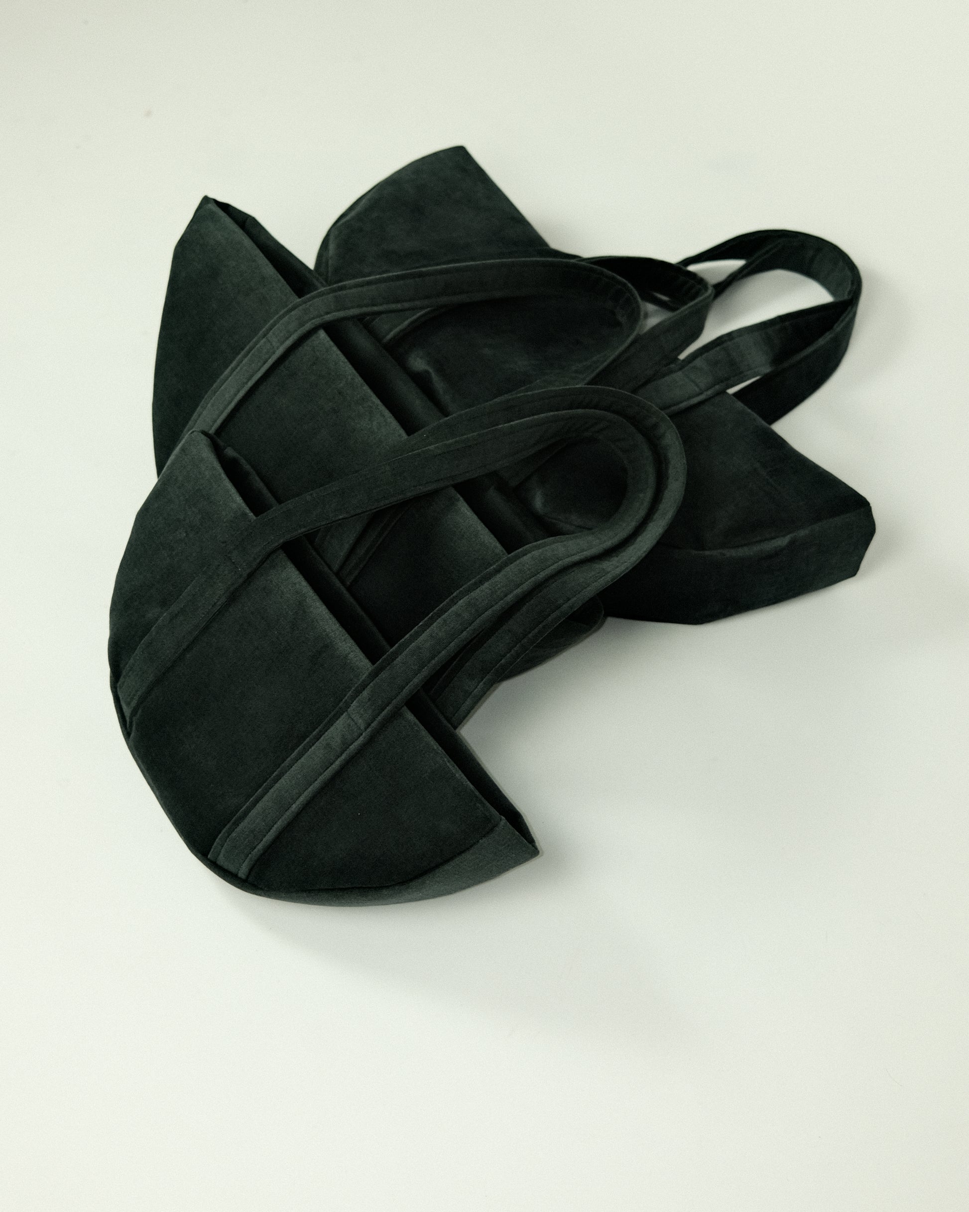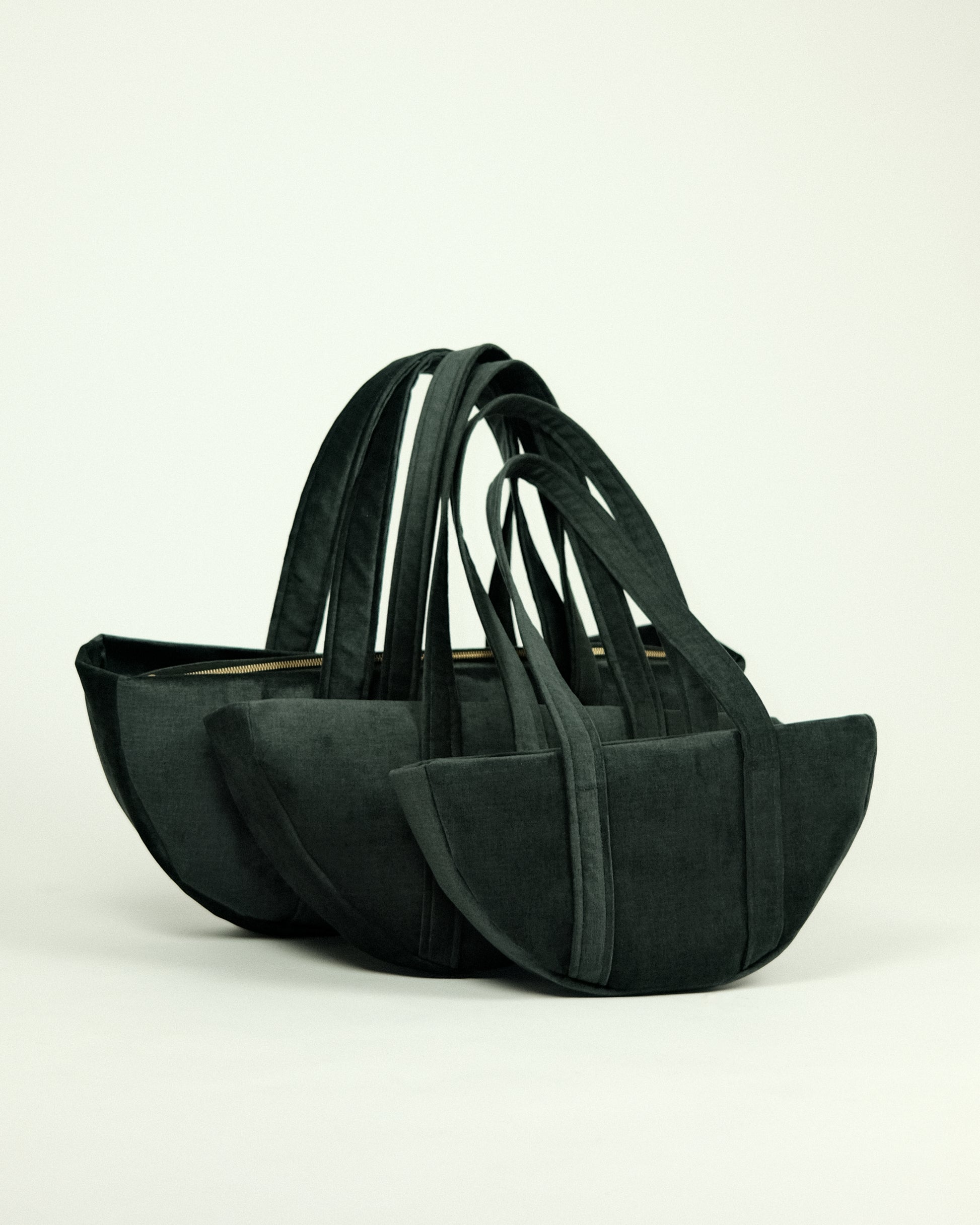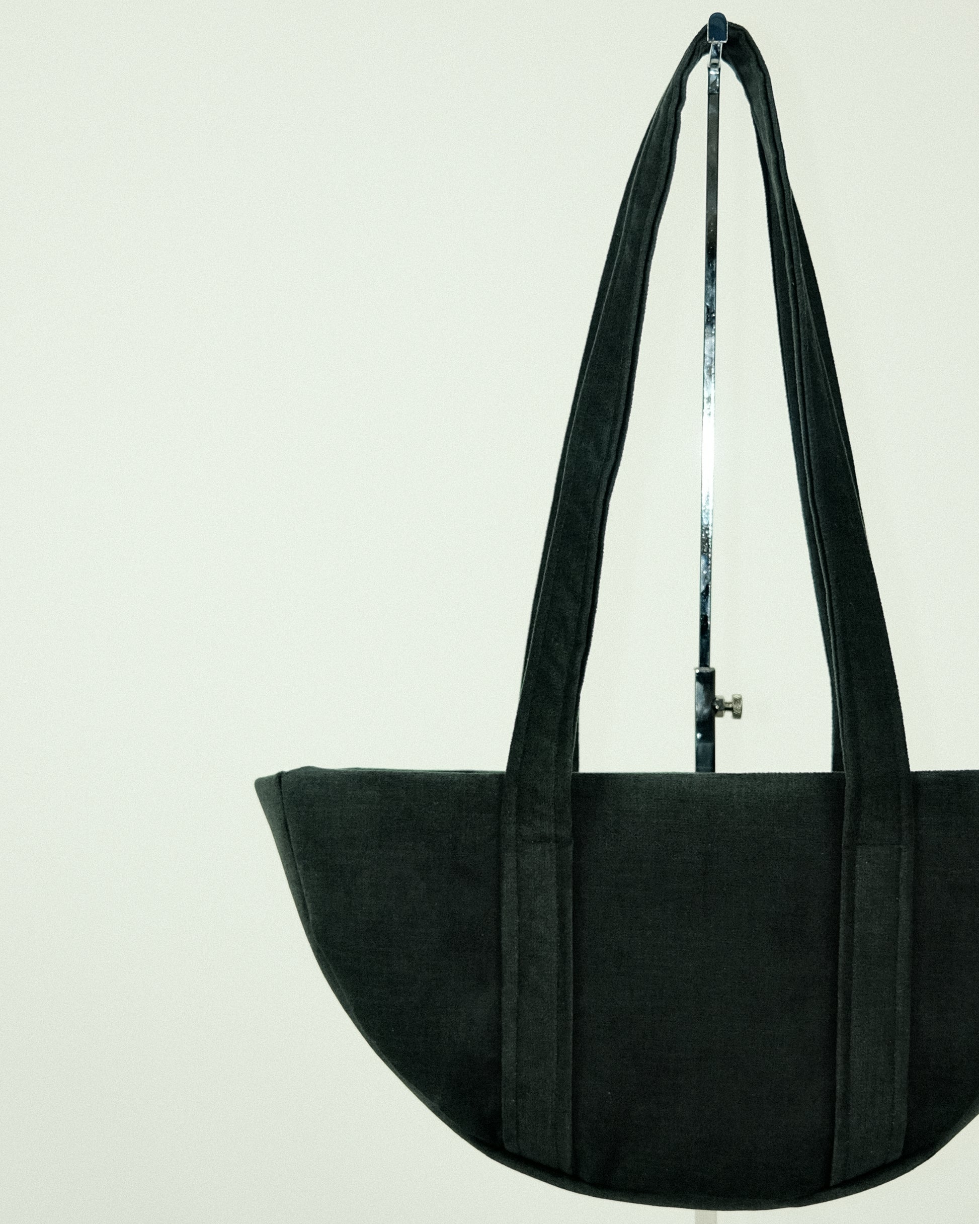 • Upcycled materials: fabric sourced from deadstock rolls carefully selected at R-Use Fabrics and Wasted Fabric, giving new life to forgotten textiles.